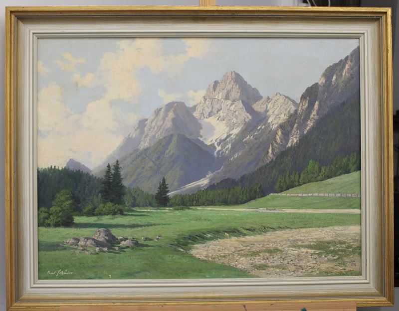0986-Paul Schüler Gebirgslandschaft Gemälde 1. H. 20 Jh.