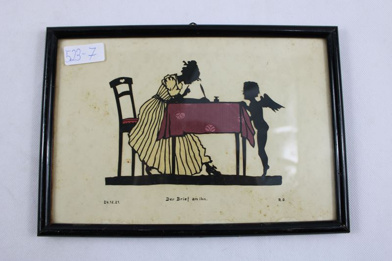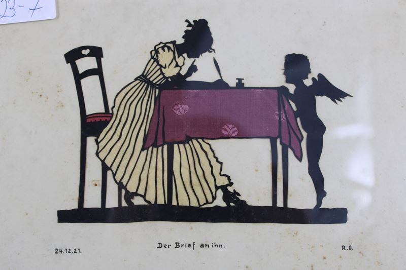 Scherenschnitt mit Stoffeinlagen "Der Brief an ihn." 1921