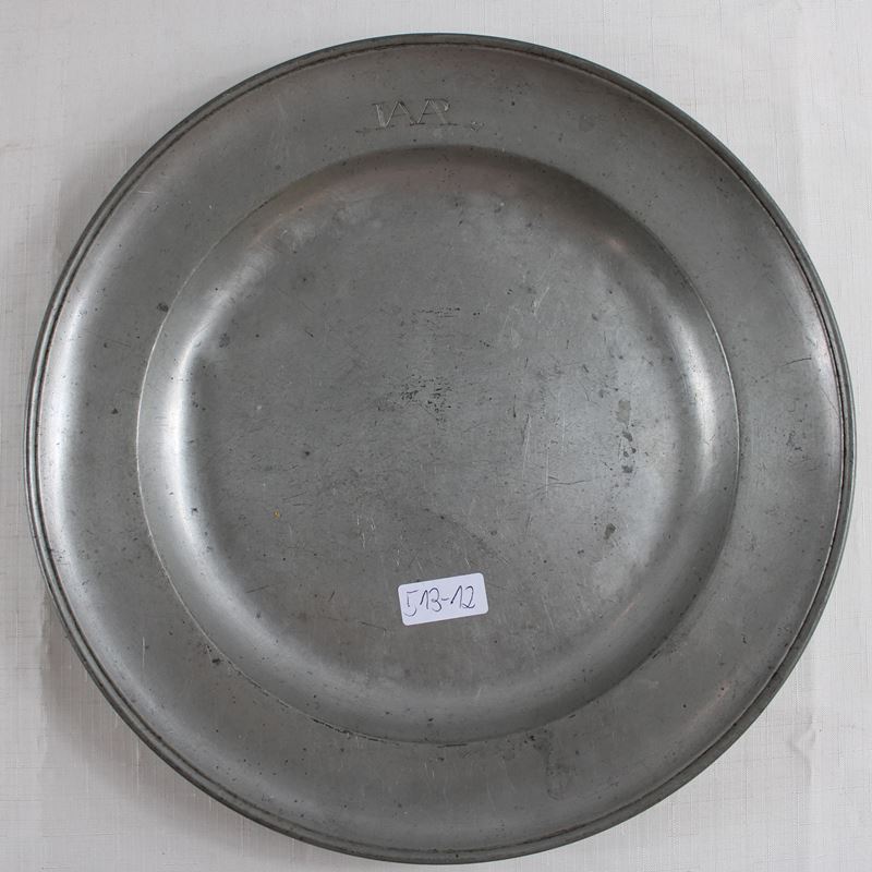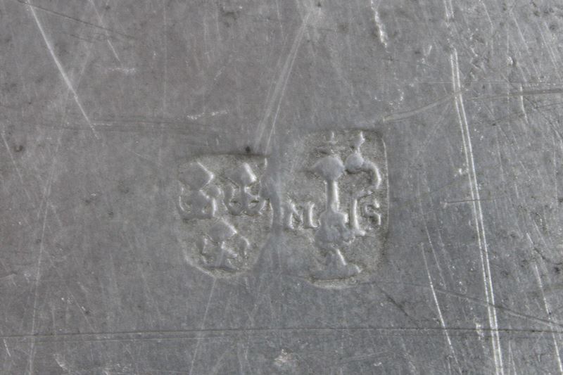 rückseitig Zinnmarke von Zinngiesser Matthias Sick d. Ä. tätig in Landshut, Ø ca. 33 cm, 1229 g