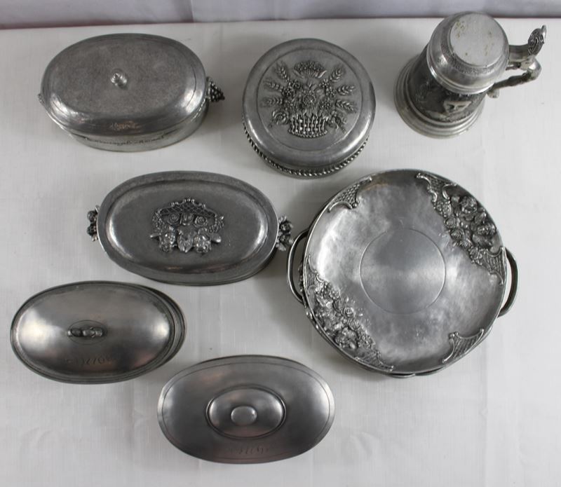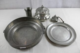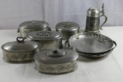 1006-Zinndeckel mit Porzellaneinsatz Tarok Spielkarten um 1900 (selten)