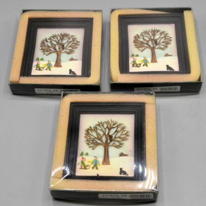 3 kleine Wachs Bilder Winter Schlittenfahrt ca. 10,5 x 9,3 cm