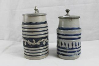 0665-Steinzeug Walzenkrüge Ritzdekor 2 St. Westerwald 19 Jh.