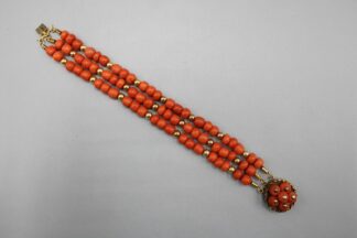 0092-Korallenarmband 3-reihig mit 585 Goldverschluss um 1900